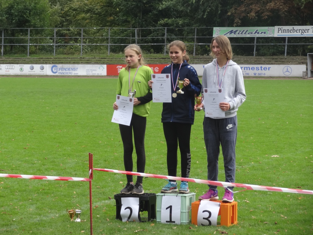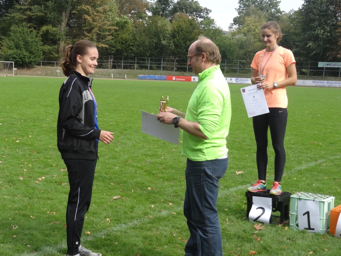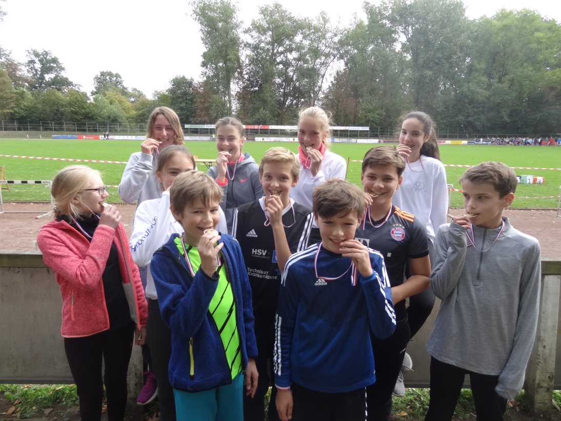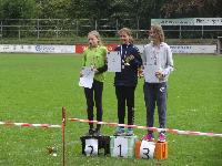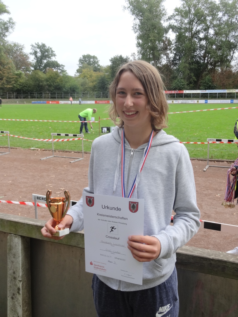 Stine musste als Jüngste als Erstes ran und landete bei ihrem ersten Crosslauf auf einem guten Mittelplatz. Anastasia war selbst über ihren 3. Platz überrascht. Unsere Mädchen des Jahrgangs 2005 hatten nämlich den Start verschlafen. Der Starter mit seiner Startklappe war „total plötzlich da, obwohl man sich noch hinter der Balustrade ganz entspannt dehnte“. Da waren alle anderen schon einige Meter weg, als man hinterhersprinten musste. Umso toller der Erfolg von Anastasia, Karoline, Anna, Rumeysa und Lina, die alle weit vorne landeten. Bente wurde wie vor zwei Jahren 1! Sie konnte ihre Bestzeit von 15:51 von vor zwei Jahren noch um eine halbe Minute verbessern.