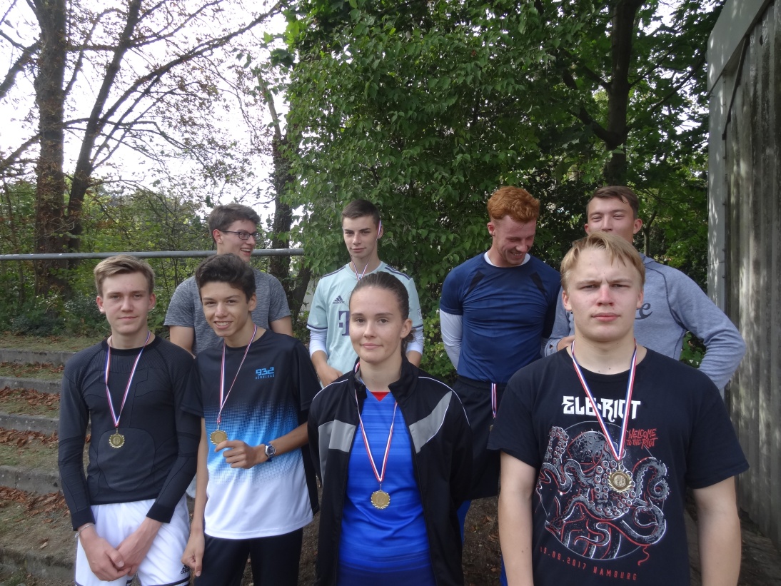 Bei den Jungs sammelten Konstantin, Malte, Ole, Bjarne und Kjell wertvolle Erfahrungen. Sie mussten nämlich zugeben, dass man in der eigenen Klasse spitze ist, man aber im Vergleich zu den Besten der anderen Schulen im Kreis ordentlich kämpfen muss. Bei den älteren Jungs hatten wir glücklicherweise viele am Start. Da es insgesamt hier aber wenig Anmeldungen gab, starteten alle gemeinsam, auch die Mädchen. Tom und Sjunne verpassen hier mit ihren 4. Plätzen in ihrer Jahrgangswertung nur knapp das Treppchen. Moritz hingegen wurde 3, bekam dies aber gar nicht mit, weil er im gesamten Lauf 8. von allen Jungs wurde. So verpasste er leider die Siegerehrung.