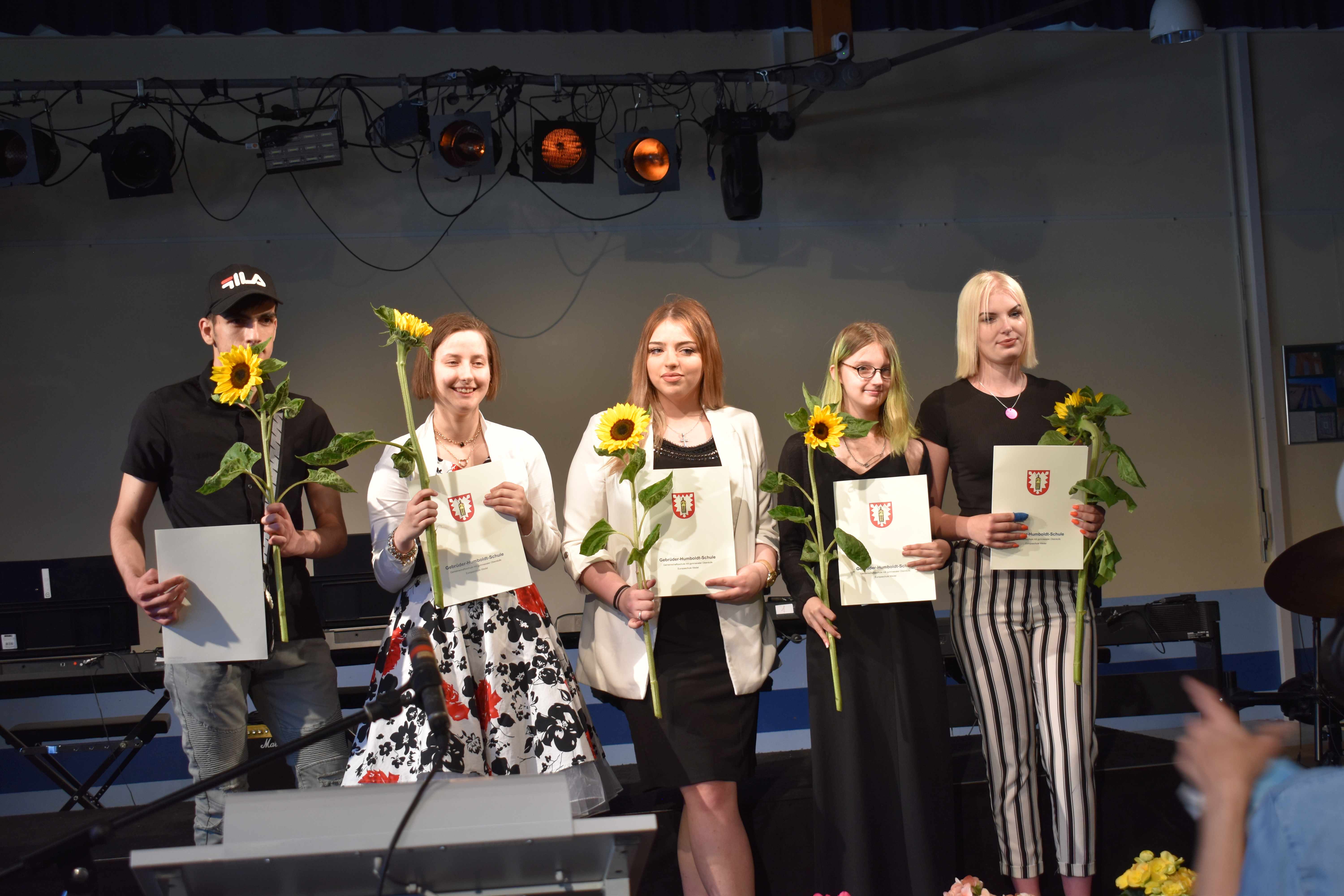 In einem feierlichen Rahmen wurden die ESA/MSA-Absolventinnen, die die GHS Wedel zum Schuljahresende verlassen werden, in der von den Eltern festlich geschmückten Mensa am 22. Juni 2022 entlassen. Einen Bericht findet man hier: